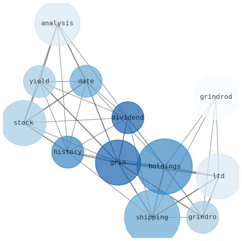 Are looking for the most relevant information about Grindrod Shipping Holdings? Investor spend a lot of time searching for information to make investment decisions in Grindrod Shipping Holdings. This task is often burdensome and consumes huge amounts of free time. It also leads to mistakes due to fatigue and bounded rationality. As a solution, we programmed an artificial intelligence that reads the whole internet and the uses natural language processing and vectorizers to summarize the information. Usually, the AI reads several hundred pages and summarize it to a short document. This document presents our results. We found that the most common words in the internet about Grindrod Shipping Holdings are: shipping, holding, Grindrod, Shipping, Holdings, Ltd, grindrod, and the most common words in the summary are: ship, stock, dividend, dry, holding, ltd, shipping, . One of the sentences in the summary was: grindro shipping holdings (grin) (GRIN) Dividend History, Dates …