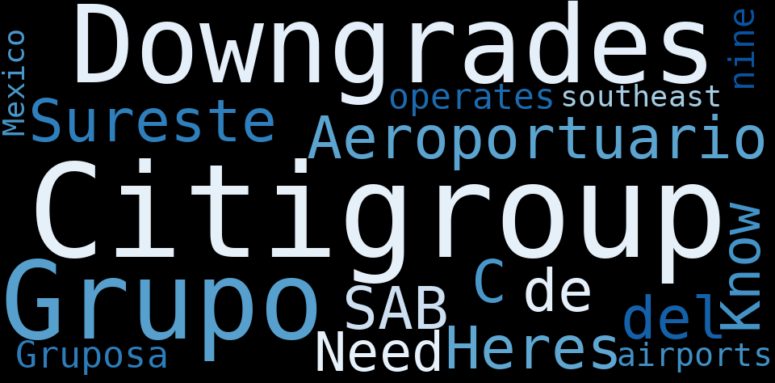 How much time have you spent trying to decide whether investing in Grupo Aeroportuario del Sureste? Many investors start with the dream of being free. They expect to find on the stock market an option to have time to develop their own interests and hobbies. That is, a way to escape a 9 to 5 job. However, investment is complex and investors end up spending whole days (and nights) trying to figure out which the right stock to invest is. The dream of stock investing becomes the nightmare of facing infinity amounts of information. As a solution, we programmed an artificial intelligence that reads the whole internet and the uses natural language processing and vectorizers to summarize the information. Usually, the AI reads several hundred pages and summarize it to a short document. This document presents our results. We found that the most common words in the internet about Grupo …