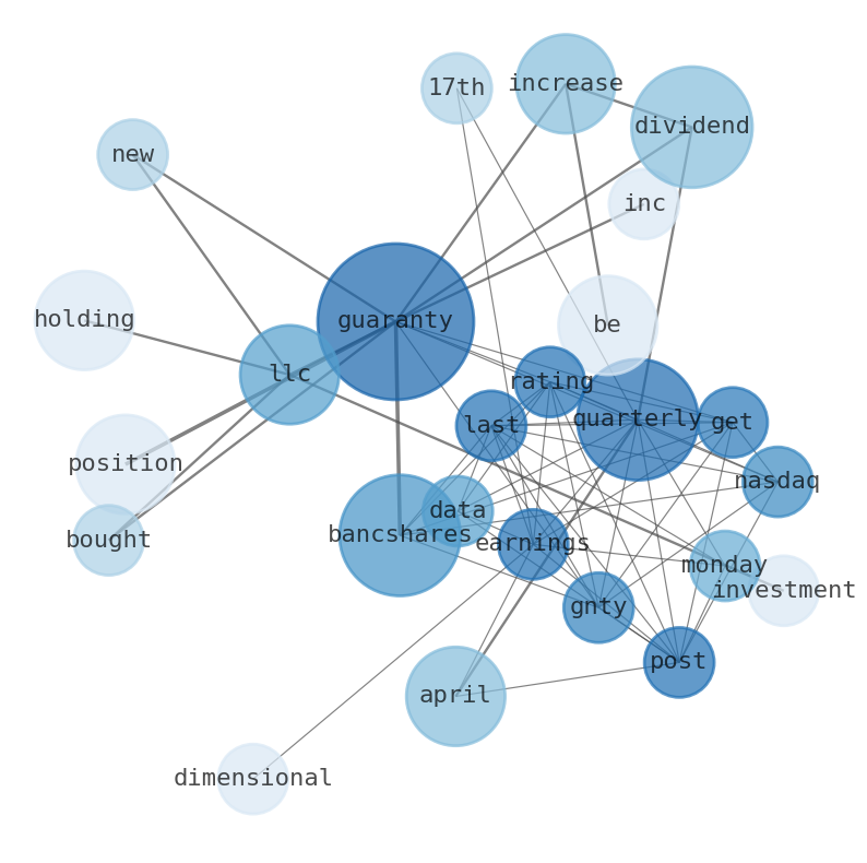 How much time have you spent trying to decide whether investing in Guaranty Bancshares? Many investors start with the dream of being free. They expect to find on the stock market an option to have time to develop their own interests and hobbies. That is, a way to escape a 9 to 5 job. However, investment is complex and investors end up spending whole days (and nights) trying to figure out which the right stock to invest is. The dream of stock investing becomes the nightmare of facing infinity amounts of information. As a solution, we programmed an artificial intelligence that reads the whole internet and the uses natural language processing and vectorizers to summarize the information. Usually, the AI reads several hundred pages and summarize it to a short document. This document presents our results. We found that the most common words in the internet about Guaranty Bancshares are: …