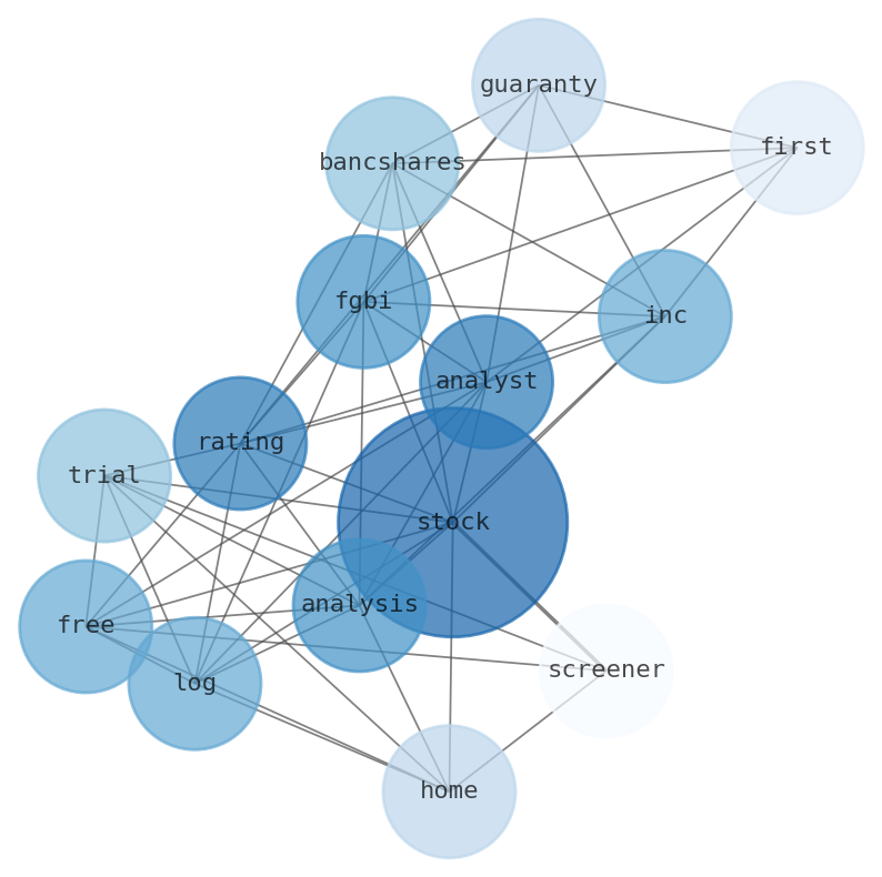 How much time have you spent trying to decide whether investing in Guaranty Bancshares? Many investors start with the dream of being free. They expect to find on the stock market an option to have time to develop their own interests and hobbies. That is, a way to escape a 9 to 5 job. However, investment is complex and investors end up spending whole days (and nights) trying to figure out which the right stock to invest is. The dream of stock investing becomes the nightmare of facing infinity amounts of information. As a solution, we programmed an artificial intelligence that reads the whole internet and the uses natural language processing and vectorizers to summarize the information. Usually, the AI reads several hundred pages and summarize it to a short document. This document presents our results. We found that the most common words in the internet about Guaranty Bancshares are: Stock, First, Guaranty, Bancshares, Inc, FGBI, Analyst, and the most common words in the summary are: bank, first, credit, union, federal, national, state, . One of the sentences in the summary was: First Guaranty Bancshares, Inc. Other searches related to this term that the AI found were: stockmarketlive, livestock, stockmarketforbeginners, thestockmarket, stockmarkettoday, stockmarkettrading, stockmarketstocks, todaystockmarket, thestockmarket, marketnews, stockmarketnews, whatisstockmarket, usstockmarket, stockmarketopen. #bank #first #credit #union #federal #national #state.
