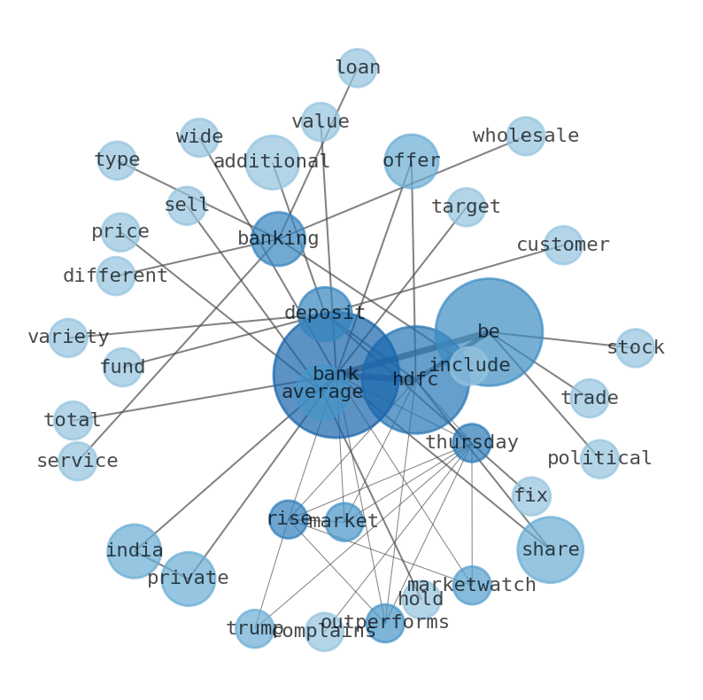 This document will help you to evaluate HDFC Bank without reading an infinite amount of sources. Relying only on stock quotes or prices to make investment decisions is a mistake. Analyzing and observing stock charts, highs and lows and other numerical data does not allow to evaluate the real value of a company. Stock quotes and prices are the result of underlying characteristics of a company and of events and news happening around them. For this reason, investing must be based on information, not numbers. As a solution, we programmed an artificial intelligence that reads the whole internet and the uses natural language processing and vectorizers to summarize the information. Usually, the AI reads several hundred pages and summarize it to a short document. This document presents our results. We found that the most common words in the internet about HDFC Bank are: Bank, HDFC, bank, share, offer, banking, additional, …