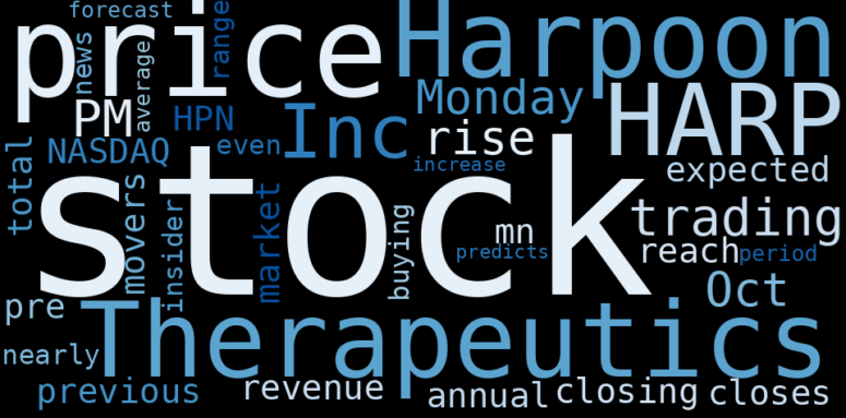How much time have you spent trying to decide whether investing in Harpoon Therapeutics? Many investors start with the dream of being free. They expect to find on the stock market an option to have time to develop their own interests and hobbies. That is, a way to escape a 9 to 5 job. However, investment is complex and investors end up spending whole days (and nights) trying to figure out which the right stock to invest is. The dream of stock investing becomes the nightmare of facing infinity amounts of information. As a solution, we programmed an artificial intelligence that reads the whole internet and the uses natural language processing and vectorizers to summarize the information. Usually, the AI reads several hundred pages and summarize it to a short document. This document presents our results. We found that the most common words in the internet about Harpoon Therapeutics are: …