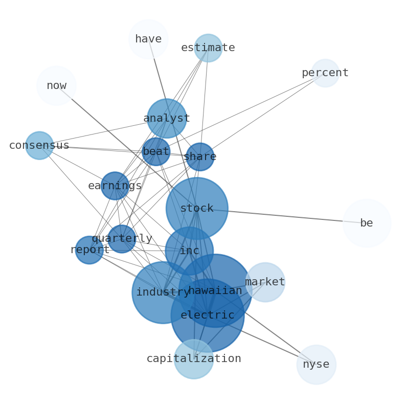 This document will help you to evaluate Hawaiian Electric Industries without reading an infinite amount of sources. Relying only on stock quotes or prices to make investment decisions is a mistake. Analyzing and observing stock charts, highs and lows and other numerical data does not allow to evaluate the real value of a company. Stock quotes and prices are the result of underlying characteristics of a company and of events and news happening around them. For this reason, investing must be based on information, not numbers. As a solution, we programmed an artificial intelligence that reads the whole internet and the uses natural language processing and vectorizers to summarize the information. Usually, the AI reads several hundred pages and summarize it to a short document. This document presents our results. We found that the most common words in the internet about Hawaiian Electric Industries are: Hawaiian, Electric, stock, Industries, HE, Inc, analyst, and the most common words in the summary are: electric, hawaiian, industry, stock, company, power, hawaii, . One of the sentences in the summary was: Johnson Fistel, LLP is investigating potential claims on behalf of Hawaiian Electric. Other searches related to this term that the AI found were: stockmarketlive, livestock, stockmarketforbeginners, thestockmarket, stockmarkettoday, stockmarkettrading, stockmarketstocks, todaystockmarket, thestockmarket, marketnews, stockmarketnews, whatisstockmarket, usstockmarket, stockmarketopen. #electric #hawaiian #industry #stock #company #power #hawaii.