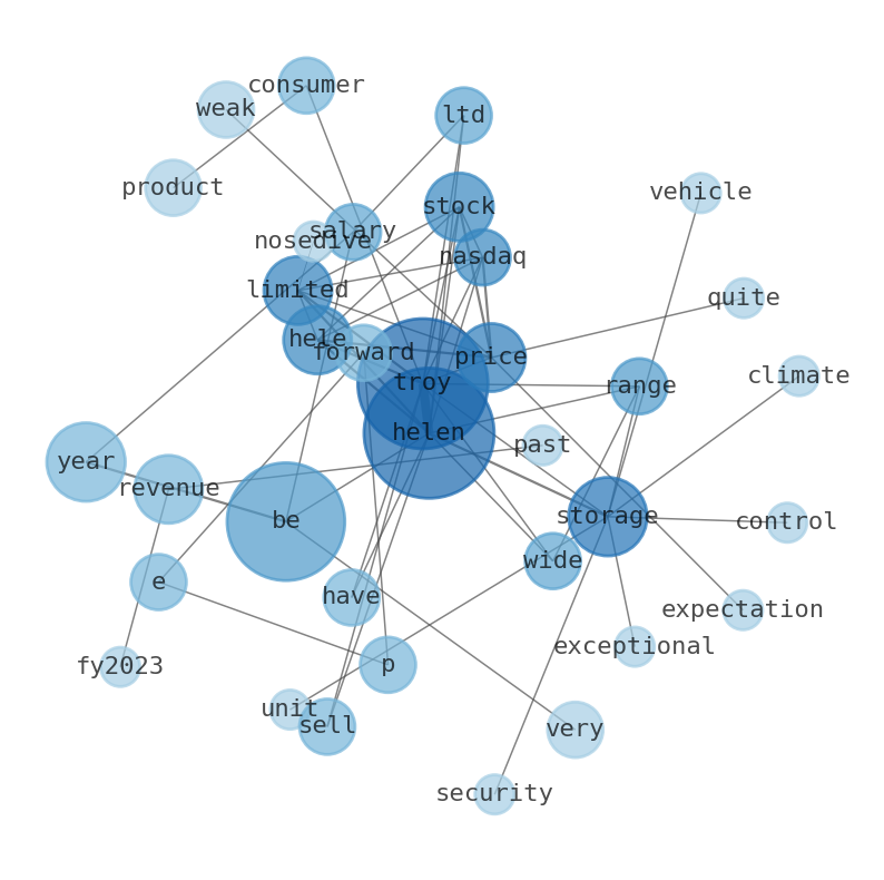 How much time have you spent trying to decide whether investing in Helen of Troy? Many investors start with the dream of being free. They expect to find on the stock market an option to have time to develop their own interests and hobbies. That is, a way to escape a 9 to 5 job. However, investment is complex and investors end up spending whole days (and nights) trying to figure out which the right stock to invest is. The dream of stock investing becomes the nightmare of facing infinity amounts of information. As a solution, we programmed an artificial intelligence that reads the whole internet and the uses natural language processing and vectorizers to summarize the information. Usually, the AI reads several hundred pages and summarize it to a short document. This document presents our results. We found that the most common words in the internet about Helen of …