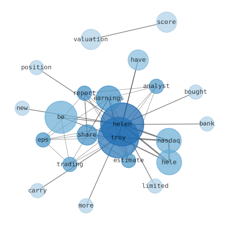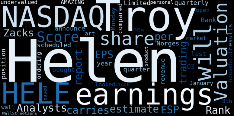 The game is changing. There is a new strategy to evaluate Helen of Troy fundamental value, possible risks and most salient advantages. Investors have traditionally relied in reading large amounts of text to evaluate the fundamental value of a stock or company. However, the development of Artificial Intelligence (AI) tools is modifying the way investments are evaluated in markets. Today, machine learning, natural language processing and bigdata allow making this process automatic, reducing large amounts of text to the elements that have a higher activation in a neural network. We programmed an artificial intelligence that reads the whole internet and the uses natural language processing and vectorizers to summarize the information. Usually, the AI reads several hundred pages and summarize it to a short document. This document presents our results. We found that the most common words in the internet about Helen of Troy are: Helen, Troy, NASDAQ, earnings, Troys, …