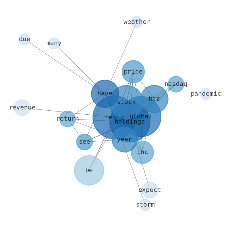 Are looking for the most relevant information about Hertz Global Holdings? Investor spend a lot of time searching for information to make investment decisions in Hertz Global Holdings. This task is often burdensome and consumes huge amounts of free time. It also leads to mistakes due to fatigue and bounded rationality. As a solution, we programmed an artificial intelligence that reads the whole internet and the uses natural language processing and vectorizers to summarize the information. Usually, the AI reads several hundred pages and summarize it to a short document. This document presents our results. We found that the most common words in the internet about Hertz Global Holdings are: Hertz, Holdings, stock, Global, year, global, price, and the most common words in the summary are: hertz, global, holding, stock, car, rental, inc, . One of the sentences in the summary was: Hertz has faced a significant financial setback due …