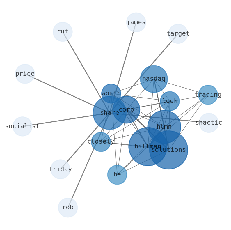 This document will help you to evaluate Hillman Solutions without reading an infinite amount of sources. Relying only on stock quotes or prices to make investment decisions is a mistake. Analyzing and observing stock charts, highs and lows and other numerical data does not allow to evaluate the real value of a company. Stock quotes and prices are the result of underlying characteristics of a company and of events and news happening around them. For this reason, investing must be based on information, not numbers. As a solution, we programmed an artificial intelligence that reads the whole internet and the uses natural language processing and vectorizers to summarize the information. Usually, the AI reads several hundred pages and summarize it to a short document. This document presents our results. We found that the most common words in the internet about Hillman Solutions are: Hillman, share, Solutions, Corp, NASDAQHLMN, solution, trading, and the most common words in the summary are: hillman, solution, service, event, news, community, new, . One of the sentences in the summary was: TheStreet lowered shares of Hillman solutions from a “c-” rating to a ‘d+” in a research note on Tuesday, October 31st. Other searches related to this term that the AI found were: stockmarketlive, livestock, stockmarketforbeginners, thestockmarket, stockmarkettoday, stockmarkettrading, stockmarketstocks, todaystockmarket, thestockmarket, marketnews, stockmarketnews, whatisstockmarket, usstockmarket, stockmarketopen. #hillman #solution #service #event #news #community #new.