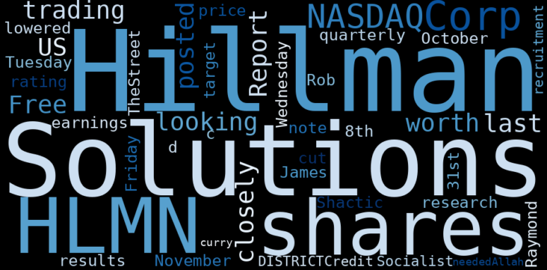 Are looking for the most relevant information about Hillman Solutions? Investor spend a lot of time searching for information to make investment decisions in Hillman Solutions. This task is often burdensome and consumes huge amounts of free time. It also leads to mistakes due to fatigue and bounded rationality. As a solution, we programmed an artificial intelligence that reads the whole internet and the uses natural language processing and vectorizers to summarize the information. Usually, the AI reads several hundred pages and summarize it to a short document. This document presents our results. We found that the most common words in the internet about Hillman Solutions are: Hillman, share, Solutions, Corp, NASDAQHLMN, solution, trading, and the most common words in the summary are: hillman, solution, service, event, news, community, new, . One of the sentences in the summary was: TheStreet lowered shares of Hillman solutions from a “c-” rating to …