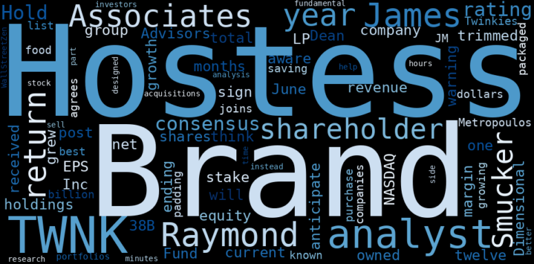 How much time have you spent trying to decide whether investing in Hostess Brands? Many investors start with the dream of being free. They expect to find on the stock market an option to have time to develop their own interests and hobbies. That is, a way to escape a 9 to 5 job. However, investment is complex and investors end up spending whole days (and nights) trying to figure out which the right stock to invest is. The dream of stock investing becomes the nightmare of facing infinity amounts of information. As a solution, we programmed an artificial intelligence that reads the whole internet and the uses natural language processing and vectorizers to summarize the information. Usually, the AI reads several hundred pages and summarize it to a short document. This document presents our results. We found that the most common words in the internet about Hostess Brands are: …