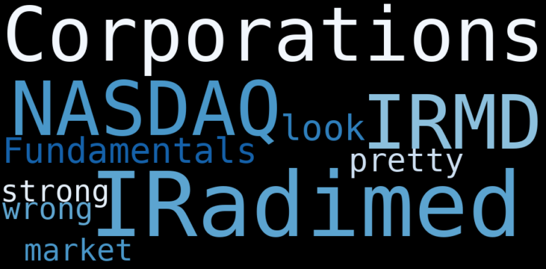 How much time have you spent trying to decide whether investing in IRadimed? Many investors start with the dream of being free. They expect to find on the stock market an option to have time to develop their own interests and hobbies. That is, a way to escape a 9 to 5 job. However, investment is complex and investors end up spending whole days (and nights) trying to figure out which the right stock to invest is. The dream of stock investing becomes the nightmare of facing infinity amounts of information. As a solution, we programmed an artificial intelligence that reads the whole internet and the uses natural language processing and vectorizers to summarize the information. Usually, the AI reads several hundred pages and summarize it to a short document. This document presents our results. We found that the most common words in the internet about IRadimed are: IRadimed, Corporations, NASDAQIRMD, Fundamentals, look, pretty, strong, and the most common words in the summary are: medical, device, unlock, nasdaq, inc, bloomberg, iradimed, . One of the sentences in the summary was: IRadimed Corporations (NASDAQ:IRMD) Fundamentals look pretty strong: Could the market be wrong?. Other searches related to this term that the AI found were: stockmarketlive, livestock, stockmarketforbeginners, thestockmarket, stockmarkettoday, stockmarkettrading, stockmarketstocks, todaystockmarket, thestockmarket, marketnews, stockmarketnews, whatisstockmarket, usstockmarket, stockmarketopen. #medical #device #unlock #nasdaq #inc #bloomberg #iradimed.