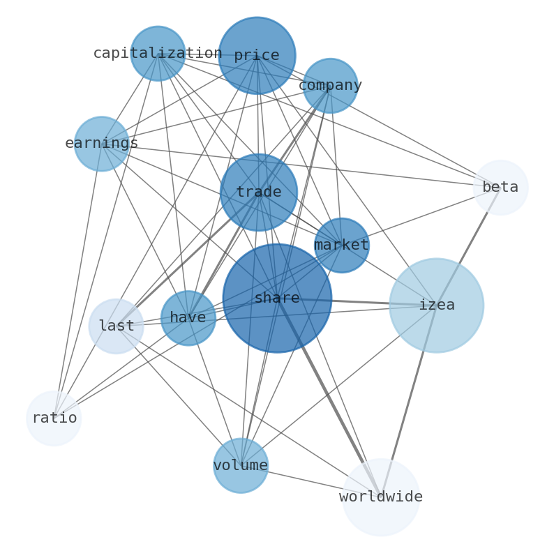 The game is changing. There is a new strategy to evaluate IZEA Worldwide fundamental value, possible risks and most salient advantages. Investors have traditionally relied in reading large amounts of text to evaluate the fundamental value of a stock or company. However, the development of Artificial Intelligence (AI) tools is modifying the way investments are evaluated in markets. Today, machine learning, natural language processing and bigdata allow making this process automatic, reducing large amounts of text to the elements that have a higher activation in a neural network. We programmed an artificial intelligence that reads the whole internet and the uses natural language processing and vectorizers to summarize the information. Usually, the AI reads several hundred pages and summarize it to a short document. This document presents our results. We found that the most common words in the internet about IZEA Worldwide are: share, trade, IZEA, Worldwide, last, volume, company, …