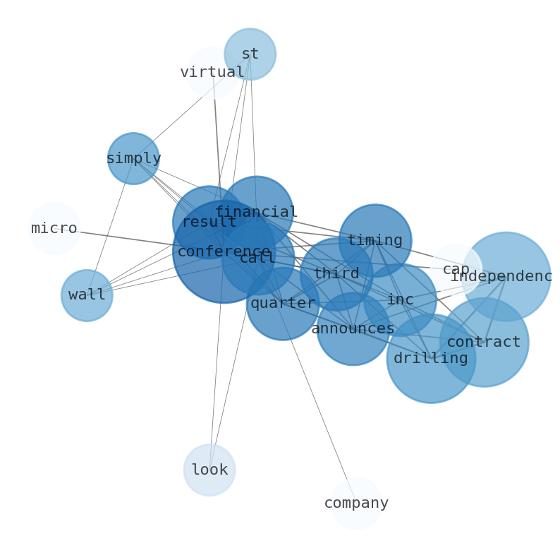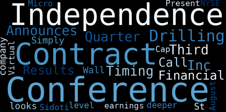This document will help you to evaluate Independence Contract Drilling without reading an infinite amount of sources. Relying only on stock quotes or prices to make investment decisions is a mistake. Analyzing and observing stock charts, highs and lows and other numerical data does not allow to evaluate the real value of a company. Stock quotes and prices are the result of underlying characteristics of a company and of events and news happening around them. For this reason, investing must be based on information, not numbers. As a solution, we programmed an artificial intelligence that reads the whole internet and the uses natural language processing and vectorizers to summarize the information. Usually, the AI reads several hundred pages and summarize it to a short document. This document presents our results. We found that the most common words in the internet about Independence Contract Drilling are: Independence, Contract, Conference, Drilling, Inc, …