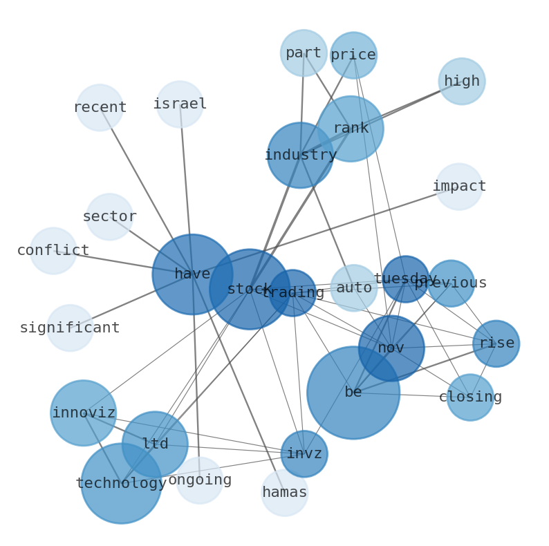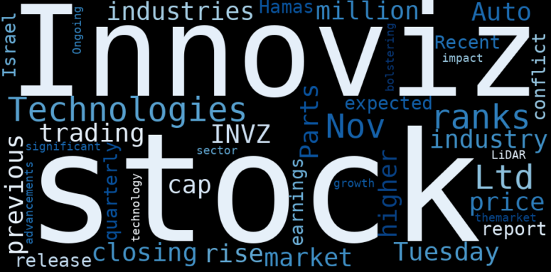 This document will help you to evaluate Innoviz Technologies without reading an infinite amount of sources. Relying only on stock quotes or prices to make investment decisions is a mistake. Analyzing and observing stock charts, highs and lows and other numerical data does not allow to evaluate the real value of a company. Stock quotes and prices are the result of underlying characteristics of a company and of events and news happening around them. For this reason, investing must be based on information, not numbers. As a solution, we programmed an artificial intelligence that reads the whole internet and the uses natural language processing and vectorizers to summarize the information. Usually, the AI reads several hundred pages and summarize it to a short document. This document presents our results. We found that the most common words in the internet about Innoviz Technologies are: stock, Innoviz, Technologies, Ltd, Nov, industry, rank, and the most common words in the summary are: technology, follow, israel, nov, nasdaq, innoviz, company, . One of the sentences in the summary was: Innoviz Technologies Ltd (INVZ) stock is trading at $2.04 as of 10:48 AM on Tuesday, Nov 14, a rise of $0.08, or 3.83% from the previous closing price of $1.96. Other searches related to this term that the AI found were: stockmarketlive, livestock, stockmarketforbeginners, thestockmarket, stockmarkettoday, stockmarkettrading, stockmarketstocks, todaystockmarket, thestockmarket, marketnews, stockmarketnews, whatisstockmarket, usstockmarket, stockmarketopen. #technology #follow #israel #nov #nasdaq #innoviz #company.