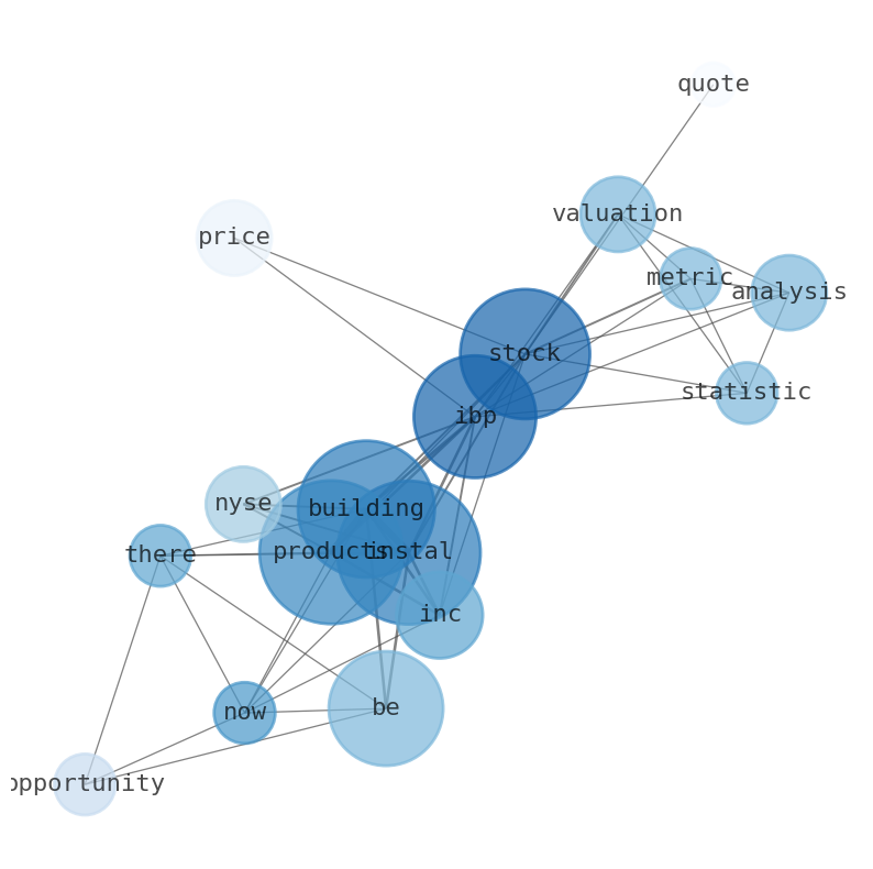 This document will help you to evaluate Installed Building Products without reading an infinite amount of sources. Relying only on stock quotes or prices to make investment decisions is a mistake. Analyzing and observing stock charts, highs and lows and other numerical data does not allow to evaluate the real value of a company. Stock quotes and prices are the result of underlying characteristics of a company and of events and news happening around them. For this reason, investing must be based on information, not numbers. As a solution, we programmed an artificial intelligence that reads the whole internet and the uses natural language processing and vectorizers to summarize the information. Usually, the AI reads several hundred pages and summarize it to a short document. This document presents our results. We found that the most common words in the internet about Installed Building Products are: Installed, stock, Building, Products, product, Inc, IBP, and the most common words in the summary are: building, product, construction, project, instal, new, inc, . One of the sentences in the summary was: is the second-largest installer of residential and commercial insulation. Other searches related to this term that the AI found were: stockmarketlive, livestock, stockmarketforbeginners, thestockmarket, stockmarkettoday, stockmarkettrading, stockmarketstocks, todaystockmarket, thestockmarket, marketnews, stockmarketnews, whatisstockmarket, usstockmarket, stockmarketopen. #building #product #construction #project #instal #new #inc.