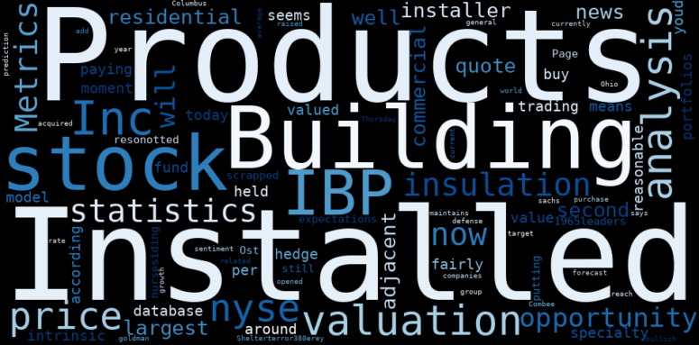Are looking for the most relevant information about Installed Building Products? Investor spend a lot of time searching for information to make investment decisions in Installed Building Products. This task is often burdensome and consumes huge amounts of free time. It also leads to mistakes due to fatigue and bounded rationality. As a solution, we programmed an artificial intelligence that reads the whole internet and the uses natural language processing and vectorizers to summarize the information. Usually, the AI reads several hundred pages and summarize it to a short document. This document presents our results. We found that the most common words in the internet about Installed Building Products are: Installed, stock, Building, Products, product, Inc, IBP, and the most common words in the summary are: building, product, construction, project, instal, new, inc, . One of the sentences in the summary was: is the second-largest installer of residential and commercial …