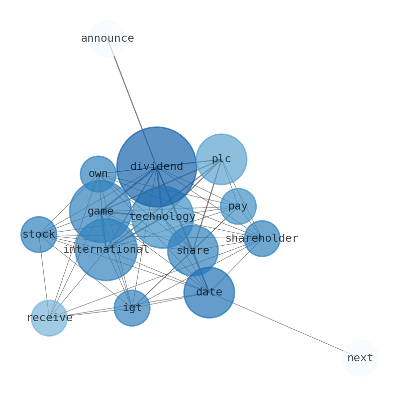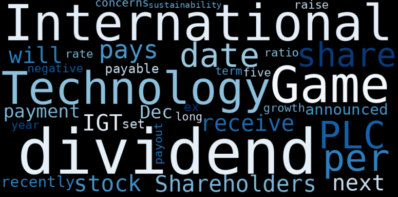 This document will help you to evaluate International Game Technology without reading an infinite amount of sources. Relying only on stock quotes or prices to make investment decisions is a mistake. Analyzing and observing stock charts, highs and lows and other numerical data does not allow to evaluate the real value of a company. Stock quotes and prices are the result of underlying characteristics of a company and of events and news happening around them. For this reason, investing must be based on information, not numbers. As a solution, we programmed an artificial intelligence that reads the whole internet and the uses natural language processing and vectorizers to summarize the information. Usually, the AI reads several hundred pages and summarize it to a short document. This document presents our results. We found that the most common words in the internet about International Game Technology are: dividend, International, Game, Technology, PLC, share, date, and the most common words in the summary are: game, technology, news, job, market, international, top, . One of the sentences in the summary was: International Game Technology PLC recently announced a dividend of $0.20 per share, payable on 2023-12-13, with the ex-dividend date set for 2023. Other searches related to this term that the AI found were: stockmarketlive, livestock, stockmarketforbeginners, thestockmarket, stockmarkettoday, stockmarkettrading, stockmarketstocks, todaystockmarket, thestockmarket, marketnews, stockmarketnews, whatisstockmarket, usstockmarket, stockmarketopen. #game #technology #news #job #market #international #top.