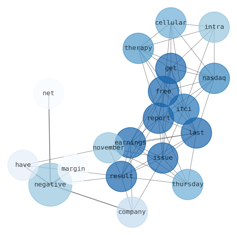 The game is changing. There is a new strategy to evaluate Intra-Cellular Therapies fundamental value, possible risks and most salient advantages. Investors have traditionally relied in reading large amounts of text to evaluate the fundamental value of a stock or company. However, the development of Artificial Intelligence (AI) tools is modifying the way investments are evaluated in markets. Today, machine learning, natural language processing and bigdata allow making this process automatic, reducing large amounts of text to the elements that have a higher activation in a neural network. We programmed an artificial intelligence that reads the whole internet and the uses natural language processing and vectorizers to summarize the information. Usually, the AI reads several hundred pages and summarize it to a short document. This document presents our results. We found that the most common words in the internet about Intra-Cellular Therapies are: negative, IntraCellular, Therapies, NASDAQITCI, Get, Free, Report, …