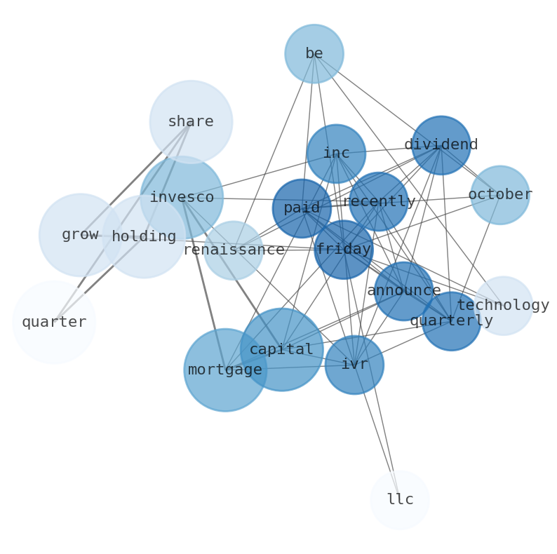 This document will help you to evaluate Invesco Mortgage Capital without reading an infinite amount of sources. Relying only on stock quotes or prices to make investment decisions is a mistake. Analyzing and observing stock charts, highs and lows and other numerical data does not allow to evaluate the real value of a company. Stock quotes and prices are the result of underlying characteristics of a company and of events and news happening around them. For this reason, investing must be based on information, not numbers. As a solution, we programmed an artificial intelligence that reads the whole internet and the uses natural language processing and vectorizers to summarize the information. Usually, the AI reads several hundred pages and summarize it to a short document. This document presents our results. We found that the most common words in the internet about Invesco Mortgage Capital are: Mortgage, Capital, grow, holding, share, …