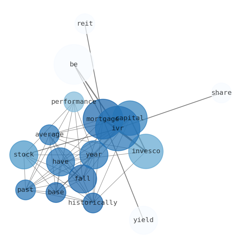 This document will help you to evaluate Invesco Mortgage Capital without reading an infinite amount of sources. Relying only on stock quotes or prices to make investment decisions is a mistake. Analyzing and observing stock charts, highs and lows and other numerical data does not allow to evaluate the real value of a company. Stock quotes and prices are the result of underlying characteristics of a company and of events and news happening around them. For this reason, investing must be based on information, not numbers. As a solution, we programmed an artificial intelligence that reads the whole internet and the uses natural language processing and vectorizers to summarize the information. Usually, the AI reads several hundred pages and summarize it to a short document. This document presents our results. We found that the most common words in the internet about Invesco Mortgage Capital are: IVR, Mortgage, Capital, Invesco, fall, …