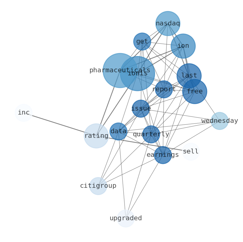 Are looking for the most relevant information about Ionis Pharmaceuticals? Investor spend a lot of time searching for information to make investment decisions in Ionis Pharmaceuticals. This task is often burdensome and consumes huge amounts of free time. It also leads to mistakes due to fatigue and bounded rationality. As a solution, we programmed an artificial intelligence that reads the whole internet and the uses natural language processing and vectorizers to summarize the information. Usually, the AI reads several hundred pages and summarize it to a short document. This document presents our results. We found that the most common words in the internet about Ionis Pharmaceuticals are: Ionis, Pharmaceuticals, Free, last, rating, NASDAQIONS, Get, and the most common words in the summary are: therapeutic, pharmaceutical, excipient, phase, pharma, ionis, sodium, . One of the sentences in the summary was: Ionis is conducting phase 3 trials for Donidalorsen, an antisense medicine …