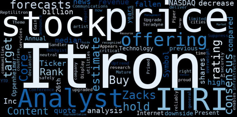How much time have you spent trying to decide whether investing in Itron? Many investors start with the dream of being free. They expect to find on the stock market an option to have time to develop their own interests and hobbies. That is, a way to escape a 9 to 5 job. However, investment is complex and investors end up spending whole days (and nights) trying to figure out which the right stock to invest is. The dream of stock investing becomes the nightmare of facing infinity amounts of information. As a solution, we programmed an artificial intelligence that reads the whole internet and the uses natural language processing and vectorizers to summarize the information. Usually, the AI reads several hundred pages and summarize it to a short document. This document presents our results. We found that the most common words in the internet about Itron are: Itron, price, …
