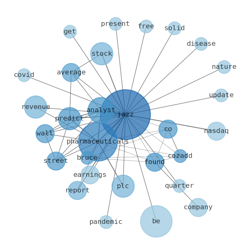 This document will help you to evaluate Jazz Pharmaceuticals without reading an infinite amount of sources. Relying only on stock quotes or prices to make investment decisions is a mistake. Analyzing and observing stock charts, highs and lows and other numerical data does not allow to evaluate the real value of a company. Stock quotes and prices are the result of underlying characteristics of a company and of events and news happening around them. For this reason, investing must be based on information, not numbers. As a solution, we programmed an artificial intelligence that reads the whole internet and the uses natural language processing and vectorizers to summarize the information. Usually, the AI reads several hundred pages and summarize it to a short document. This document presents our results. We found that the most common words in the internet about Jazz Pharmaceuticals are: Jazz, Pharmaceuticals, analyst, JAZZ, predict, stock, company, …