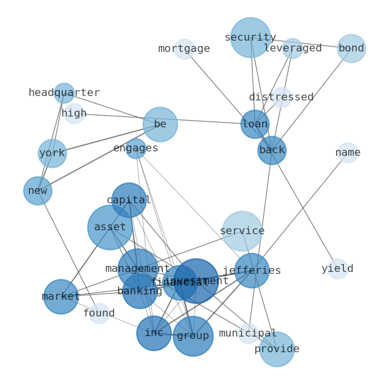 Jefferies Financial Group Inc. engages in the investment banking and capital markets, and asset management businesses in the Americas, Europe, the Middle East, and Asia. The company operates in two segments, Investment Banking and Capital Markets, and Asset Management. It provides investment banking, advisory services with respect to mergers or acquisitions, restructurings or recapitalizations and private capital advisory transactions; equity and debt underwriting; and corporate lending. In addition, the company offers financing, securities lending, and other prime brokerage services; equities research and finance; and wealth management services. Further, it provides clients with sales and trading of investment grade corporate bonds, U.S. and European government and agency securities, municipal bonds, mortgage-backed and asset-backed securities, leveraged loans, consumer loans, high yield and distressed securities, emerging markets debt, interest rate, and credit derivative products, as well as foreign exchange trade execution and securitization; and manages, invests in, and provides services to a diverse group of alternative asset management platforms across a spectrum of investment strategies and asset classes. The company was formerly known as Leucadia National Corporation and changed its name to Jefferies Financial Group Inc. in May 2018. Jefferies Financial Group Inc. was founded in 1962 and is headquartered in New York, New York.