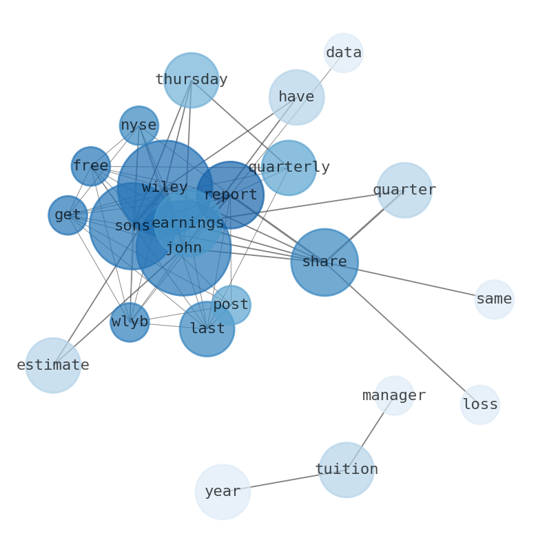 How much time have you spent trying to decide whether investing in John Wiley & Sons? Many investors start with the dream of being free. They expect to find on the stock market an option to have time to develop their own interests and hobbies. That is, a way to escape a 9 to 5 job. However, investment is complex and investors end up spending whole days (and nights) trying to figure out which the right stock to invest is. The dream of stock investing becomes the nightmare of facing infinity amounts of information. As a solution, we programmed an artificial intelligence that reads the whole internet and the uses natural language processing and vectorizers to summarize the information. Usually, the AI reads several hundred pages and summarize it to a short document. This document presents our results. We found that the most common words in the internet about John …