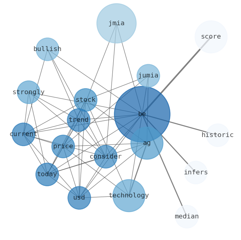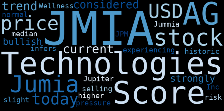 The game is changing. There is a new strategy to evaluate Jumia Technologies AG fundamental value, possible risks and most salient advantages. Investors have traditionally relied in reading large amounts of text to evaluate the fundamental value of a stock or company. However, the development of Artificial Intelligence (AI) tools is modifying the way investments are evaluated in markets. Today, machine learning, natural language processing and bigdata allow making this process automatic, reducing large amounts of text to the elements that have a higher activation in a neural network. We programmed an artificial intelligence that reads the whole internet and the uses natural language processing and vectorizers to summarize the information. Usually, the AI reads several hundred pages and summarize it to a short document. This document presents our results. We found that the most common words in the internet about Jumia Technologies AG are: JMIA, Technologies, AG, Jumia, stock, …