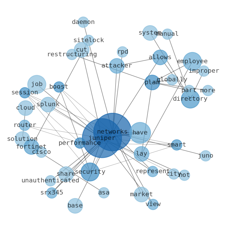 This document will help you to evaluate Juniper Networks without reading an infinite amount of sources. Relying only on stock quotes or prices to make investment decisions is a mistake. Analyzing and observing stock charts, highs and lows and other numerical data does not allow to evaluate the real value of a company. Stock quotes and prices are the result of underlying characteristics of a company and of events and news happening around them. For this reason, investing must be based on information, not numbers. As a solution, we programmed an artificial intelligence that reads the whole internet and the uses natural language processing and vectorizers to summarize the information. Usually, the AI reads several hundred pages and summarize it to a short document. This document presents our results. We found that the most common words in the internet about Juniper Networks are: Juniper, Networks, job, directory, employee, Splunk, cut, and the most common words in the summary are: network, juniper, version, prior, job, service, security, . One of the sentences in the summary was: Splunk, Juniper Networks, Zymergen and Gilead Sciences have decided to eliminate a combined 427 jobs in the Bay Area. Other searches related to this term that the AI found were: stockmarketlive, livestock, stockmarketforbeginners, thestockmarket, stockmarkettoday, stockmarkettrading, stockmarketstocks, todaystockmarket, thestockmarket, marketnews, stockmarketnews, whatisstockmarket, usstockmarket, stockmarketopen. #network #juniper #version #prior #job #service #security.