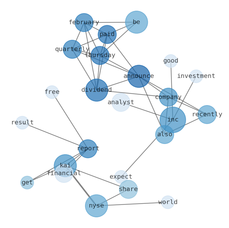 This document will help you to evaluate Kadant without reading an infinite amount of sources. Relying only on stock quotes or prices to make investment decisions is a mistake. Analyzing and observing stock charts, highs and lows and other numerical data does not allow to evaluate the real value of a company. Stock quotes and prices are the result of underlying characteristics of a company and of events and news happening around them. For this reason, investing must be based on information, not numbers. As a solution, we programmed an artificial intelligence that reads the whole internet and the uses natural language processing and vectorizers to summarize the information. Usually, the AI reads several hundred pages and summarize it to a short document. This document presents our results. We found that the most common words in the internet about Kadant are: Kadant, Inc, announce, company, also, recently, quarterly, and the …