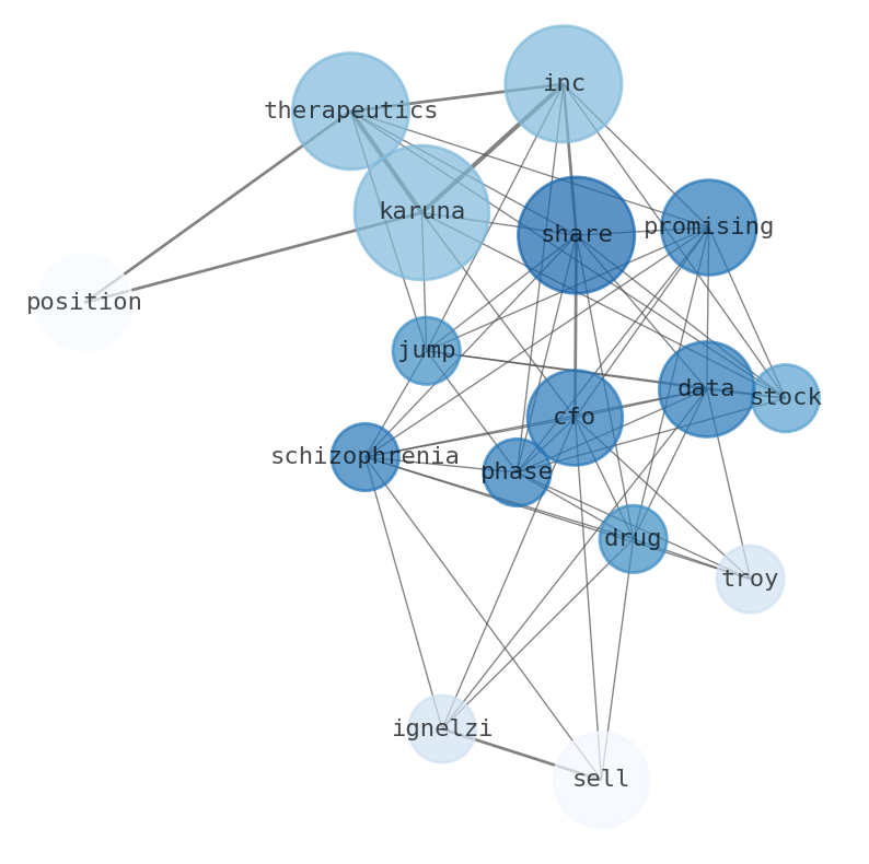 How much time have you spent trying to decide whether investing in Karuna Therapeutics? Many investors start with the dream of being free. They expect to find on the stock market an option to have time to develop their own interests and hobbies. That is, a way to escape a 9 to 5 job. However, investment is complex and investors end up spending whole days (and nights) trying to figure out which the right stock to invest is. The dream of stock investing becomes the nightmare of facing infinity amounts of information. As a solution, we programmed an artificial intelligence that reads the whole internet and the uses natural language processing and vectorizers to summarize the information. Usually, the AI reads several hundred pages and summarize it to a short document. This document presents our results. We found that the most common words in the internet about Karuna Therapeutics are: …
