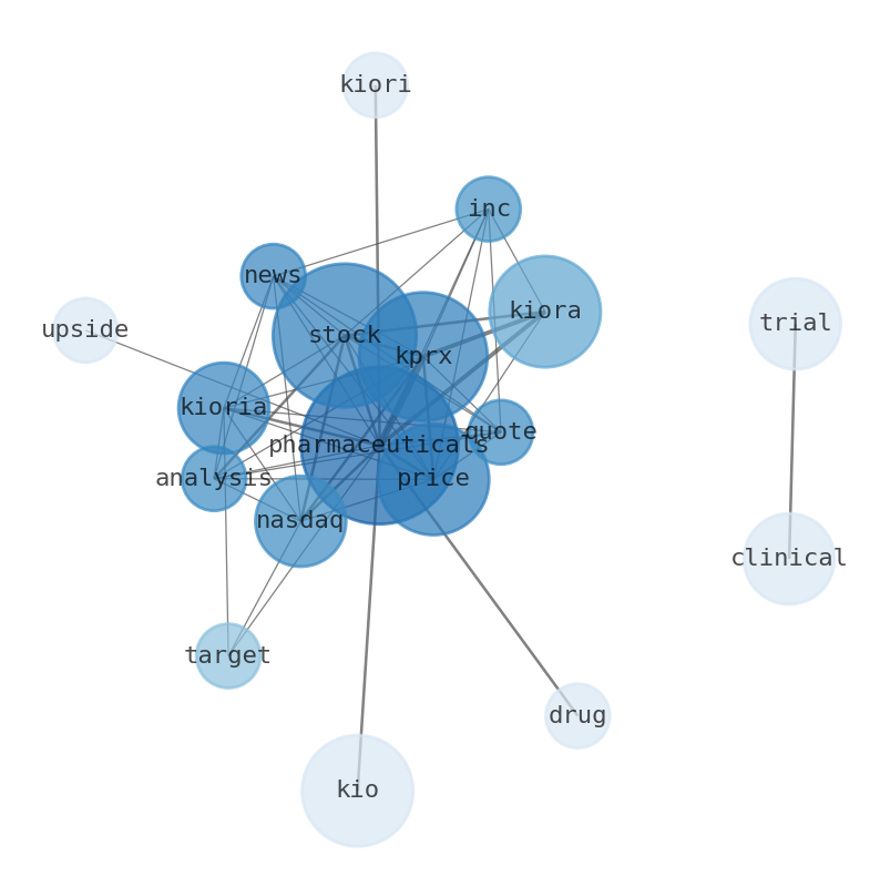 This document will help you to evaluate Kiora Pharmaceuticals without reading an infinite amount of sources. Relying only on stock quotes or prices to make investment decisions is a mistake. Analyzing and observing stock charts, highs and lows and other numerical data does not allow to evaluate the real value of a company. Stock quotes and prices are the result of underlying characteristics of a company and of events and news happening around them. For this reason, investing must be based on information, not numbers. As a solution, we programmed an artificial intelligence that reads the whole internet and the uses natural language processing and vectorizers to summarize the information. Usually, the AI reads several hundred pages and summarize it to a short document. This document presents our results. We found that the most common words in the internet about Kiora Pharmaceuticals are: Pharmaceuticals, KPRX, stock, Kiora, price, Kioria, NASDAQ, and the most common words in the summary are: inc, llc, pharmaceutical, excipient, company, phase, state, . One of the sentences in the summary was: Kiora Pharmaceuticals (KPRX) stock is heading higher on Tuesday thanks to an update on its KIO-101 eye drops clinical trial. Other searches related to this term that the AI found were: stockmarketlive, livestock, stockmarketforbeginners, thestockmarket, stockmarkettoday, stockmarkettrading, stockmarketstocks, todaystockmarket, thestockmarket, marketnews, stockmarketnews, whatisstockmarket, usstockmarket, stockmarketopen. #inc #llc #pharmaceutical #excipient #company #phase #state.