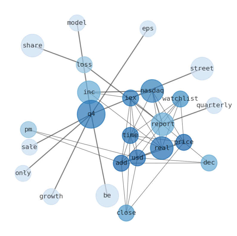 The development of Artificial Intelligence (AI) is modifying the way investments are evaluated. We programmed an artificial intelligence (A.I.) to summarize the whole internet. Whether you’re trying to make money investing online, making financial decisions or just getting informed about Wall Street, this page is a way to get informed without reading hundred of pages. Our stock market summary graphs are produced using machine learning, an unbiased view to capture what internet is saying. Usually, the AI reads several hundred pages and summarize it to a short text and several charts.
