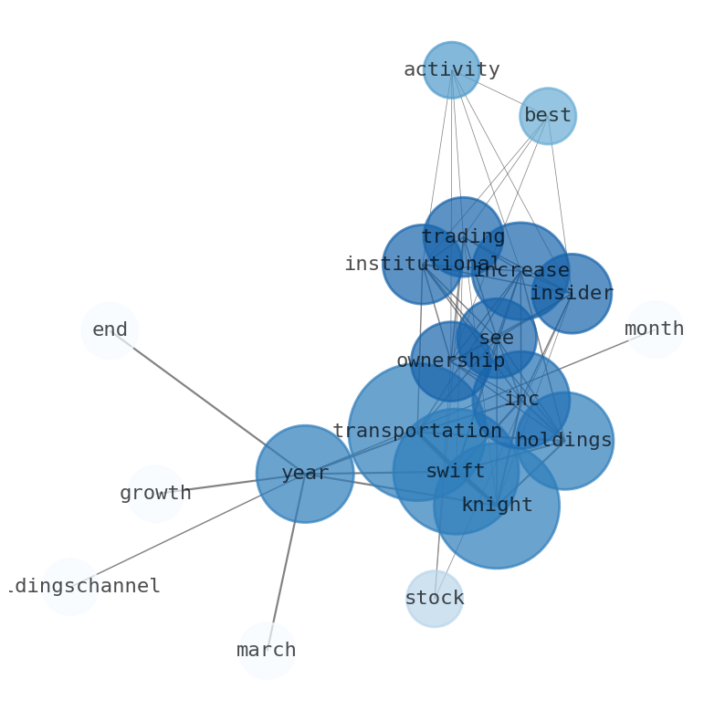 The game is changing. There is a new strategy to evaluate Knight-Swift Transportation Holdings fundamental value, possible risks and most salient advantages. Investors have traditionally relied in reading large amounts of text to evaluate the fundamental value of a stock or company. However, the development of Artificial Intelligence (AI) tools is modifying the way investments are evaluated in markets. Today, machine learning, natural language processing and bigdata allow making this process automatic, reducing large amounts of text to the elements that have a higher activation in a neural network. We programmed an artificial intelligence that reads the whole internet and the uses natural language processing and vectorizers to summarize the information. Usually, the AI reads several hundred pages and summarize it to a short document. This document presents our results. We found that the most common words in the internet about Knight-Swift Transportation Holdings are: Transportation, increase, KnightSwift, Holdings, Inc, see, ownership, and the most common words in the summary are: transportation, knightswift, stock, service, holding, market, dedicate, . One of the sentences in the summary was: insider trading. Other searches related to this term that the AI found were: stockmarketlive, livestock, stockmarketforbeginners, thestockmarket, stockmarkettoday, stockmarkettrading, stockmarketstocks, todaystockmarket, thestockmarket, marketnews, stockmarketnews, whatisstockmarket, usstockmarket, stockmarketopen. #transportation #knightswift #stock #service #holding #market #dedicate.