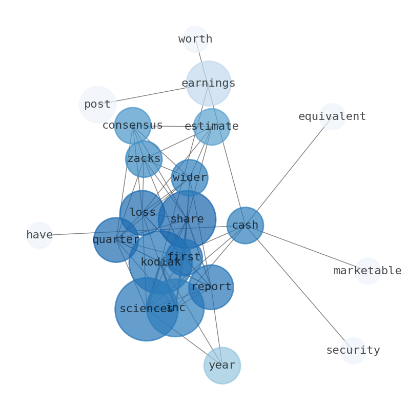The game is changing. There is a new strategy to evaluate Kodiak Sciences fundamental value, possible risks and most salient advantages. Investors have traditionally relied in reading large amounts of text to evaluate the fundamental value of a stock or company. However, the development of Artificial Intelligence (AI) tools is modifying the way investments are evaluated in markets. Today, machine learning, natural language processing and bigdata allow making this process automatic, reducing large amounts of text to the elements that have a higher activation in a neural network. We programmed an artificial intelligence that reads the whole internet and the uses natural language processing and vectorizers to summarize the information. Usually, the AI reads several hundred pages and summarize it to a short document. This document presents our results. We found that the most common words in the internet about Kodiak Sciences are: Kodiak, Inc, share, Sciences, report, loss, earnings, …