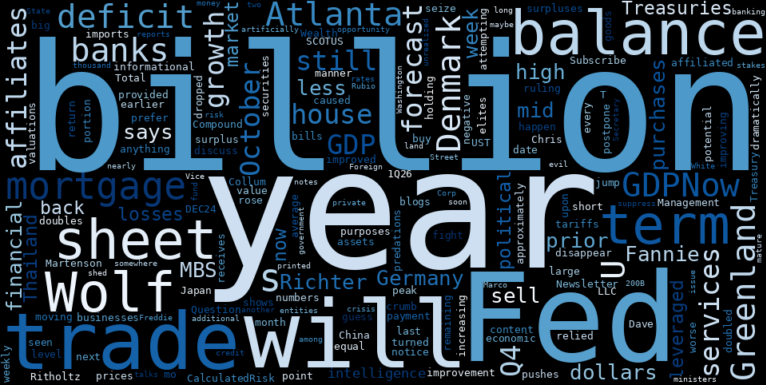 Question #9 for 2026: What will happen with house prices in 2026? CalculatedRisk Newsletter Subscribe. The Compound of Ritholtz Wealth Management LLC. receives payment from affiliates in affiliated blogs and affiliates. This content is provided for informational purposes only and should not be relied upon in any manner. US trade deficit in goods and services dramatically improved in October, with the negative trade balance improving by $19 billion in October. Year-to-date, the trade deficit was $783 billion, still $56 billion worse than a year earlier. Atlanta Fed doubled its forecast for Q4 GDP growth to +5.4%. Atlanta Fed GDPNow doubles Q4 GDPNow forecast to +5.4%. Atlanta Feds GDPNow shows that a big improvement of the trade deficit pushes up GDP growth. China, Japan Germany and Germany turned over a portion of their trade surplus dollars into $UST holding. My guess is they will buy less as their trade surpluses disappear. Can anything be seen in the numbers to point to a potential large jump in imports in 1Q26 caused by businesses attempting to postpone next year purchases until after the SCOTUS ruling on tariffs? The 12-mo moving average is has only return to the level it was in DEC24 and is approximately equal to the last peak in mid-2022. Chris Martenson and Dave Collum discuss financial markets and valuations. The financial elites would prefer we fight each other, and not notice their ever-increasing predations on every crumb of remaining economic value. Total assets on the Feds weekly balance sheet dropped by $67 billion from the prior week. Fed balance sheet rose by $8 billion from the prior week, to $241 billion. T-bills are short-term Treasury securities with terms of 1 month to 1 year. Wolf Richter says the Fed should sell $200 billion of mortgages on its balance sheet. The Fed should seize on this opportunity to sell MBS on the balance sheet, Wolf says. The fed has printed two thousand billions of dollars to artificially suppress mortgage rates, but they are still high? Wolf Richter: Fannie/Freddie will have to issue $200 billion in additional Treasuries to fund the purchases of the $200B+ in MBS. Fannie is among the most leveraged entities in the leveraged mortgage market. The banks have shed nearly all of the mortgage-and-banking risk to the government. So maybe there will be another crisis, somewhere else, private credit. Wolf Street Corp. reports on the banks unrealized losses on long term treasuries again soon. In 2030, those evil 10-year notes from 2020 will all mature, and banks will get all their money back with no losses. Foreign ministers of Denmark and Greenland land in Washington for high-stakes White House talks with U.S. Secretary of State Marco Rubio and Vice President JD Vance. North Pacific Ocean surface warmed over twice as much over the past 15 years than it did over the preceding 156 years. A 21-year-old in Santa Ana was permanently blinded in one eye after a DHS agent fired a “less-lethal” round at close range. 22 dead as crane collapses onto train in Thailand, and 22 injured in accident. Paradoxocracy (2013) is a documentary about the current political situation of Thailand, directed by Pen-Ek Ratanaruang. The final season of BORGEN – as I mentioned several times – has almost exact dialogue – where Greenland protagonists complain about Denmark´s political class (exploiting Greenland´s resources) – the way Denmark in the real world is now complaining about the US intending to do the same thing now. MEE isnt Quatari sponsored? Or am I mixing that up? GOP strategy for mid-terms was anounced yesterday: MAFYA! Many Western intelligence services are pretty pissed off and that digital fingerprints can be manipulated/erased – it´s not impossible. Dutch intelligence allegedly had a Russian source in Russia re: “Russiagate” and Clintons. Cash transactions over $200 USD in certain southern border counties will automatically be reported to the IRS. JK Rowling BACKS IRAN PSY OP, Support For ICE PLUMMETS.
