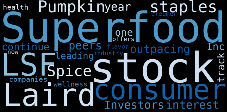 Are looking for the most relevant information about Laird Superfood? Investor spend a lot of time searching for information to make investment decisions in Laird Superfood. This task is often burdensome and consumes huge amounts of free time. It also leads to mistakes due to fatigue and bounded rationality. As a solution, we programmed an artificial intelligence that reads the whole internet and the uses natural language processing and vectorizers to summarize the information. Usually, the AI reads several hundred pages and summarize it to a short document. This document presents our results. We found that the most common words in the internet about Laird Superfood are: Superfood, stock, Laird, LSF, outpace, consumer, staple, and the most common words in the summary are: shop, superfood, creamer, coffee, laird, product, free, . One of the sentences in the summary was: Pumpkin Spice Superfood creamer now offers a pumpkin spice flavor.. Other …