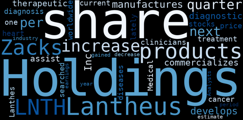 This document will help you to evaluate Lantheus Holdings without reading an infinite amount of sources. Relying only on stock quotes or prices to make investment decisions is a mistake. Analyzing and observing stock charts, highs and lows and other numerical data does not allow to evaluate the real value of a company. Stock quotes and prices are the result of underlying characteristics of a company and of events and news happening around them. For this reason, investing must be based on information, not numbers. As a solution, we programmed an artificial intelligence that reads the whole internet and the uses natural language processing and vectorizers to summarize the information. Usually, the AI reads several hundred pages and summarize it to a short document. This document presents our results. We found that the most common words in the internet about Lantheus Holdings are: Holdings, share, Lantheus, LNTH, increase, quarter, Inc, and the most common words in the summary are: holding, report, inc, nasdaq, lantheus, sp, pink, . One of the sentences in the summary was: Lantheus Holdings, Inc. Other searches related to this term that the AI found were: stockmarketlive, livestock, stockmarketforbeginners, thestockmarket, stockmarkettoday, stockmarkettrading, stockmarketstocks, todaystockmarket, thestockmarket, marketnews, stockmarketnews, whatisstockmarket, usstockmarket, stockmarketopen. #holding #report #inc #nasdaq #lantheus #sp #pink.