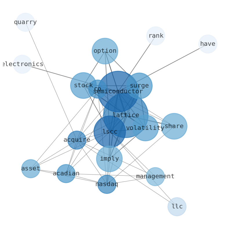 Are looking for the most relevant information about Lattice Semiconductor? Investor spend a lot of time searching for information to make investment decisions in Lattice Semiconductor. This task is often burdensome and consumes huge amounts of free time. It also leads to mistakes due to fatigue and bounded rationality. As a solution, we programmed an artificial intelligence that reads the whole internet and the uses natural language processing and vectorizers to summarize the information. Usually, the AI reads several hundred pages and summarize it to a short document. This document presents our results. We found that the most common words in the internet about Lattice Semiconductor are: Lattice, Semiconductor, share, Lattices, Implied, Co, NASDAQLSCC, and the most common words in the summary are: semiconductor, lattice, stock, market, job, price, top, . One of the sentences in the summary was: Implied Volatility Surging for Lattice Semiconductor (LSCC) Stock Options. Other searches …