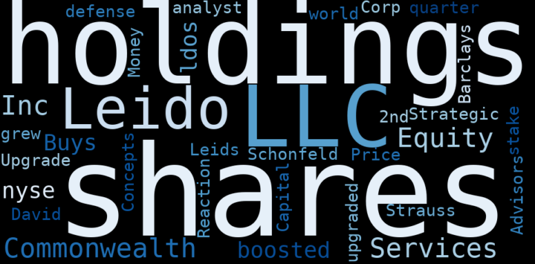 Commonwealth Equity Services LLC Buys 1,252 Shares of Leidos Holdings, Inc. Commonwealth Equity services llc buys 1, 252 shares of leidos holdings, inc. (nyse:ldos) - defense world.com. Commonwealth Equity. Services LLC boosted its stake in shares of Leids by 17.0% in the 2nd quarter. Schonfeld Strategic Advisors LLC boosted their holdings in shares. by 3,864+. Barclays analyst David Strauss upgraded Leidos Holdings, Inc. (NYSE: LDOS ) Price Reaction after the Upgrade: +0.92 (+0.85%) Money Concepts Capital Corp grew its holdings in shares of Leido by 548.8%.
