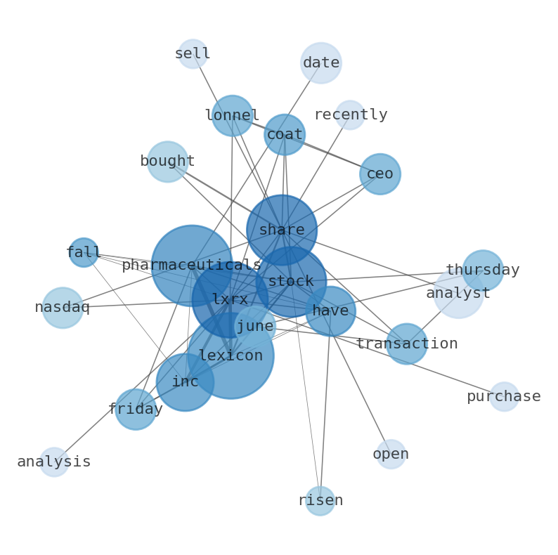 This document will help you to evaluate Lexicon Pharmaceuticals without reading an infinite amount of sources. Relying only on stock quotes or prices to make investment decisions is a mistake. Analyzing and observing stock charts, highs and lows and other numerical data does not allow to evaluate the real value of a company. Stock quotes and prices are the result of underlying characteristics of a company and of events and news happening around them. For this reason, investing must be based on information, not numbers. As a solution, we programmed an artificial intelligence that reads the whole internet and the uses natural language processing and vectorizers to summarize the information. Usually, the AI reads several hundred pages and summarize it to a short document. This document presents our results. We found that the most common words in the internet about Lexicon Pharmaceuticals are: Lexicon, Pharmaceuticals, stock, share, LXRX, Inc, Friday, and the most common words in the summary are: lexicon, pharmaceutical, follow, stock, nasdaq, market, inc, . One of the sentences in the summary was: CEO Lonnel Coats bought 40,000 shares of Lexicon pharmaceuticals stock in a transaction on June 22.. Other searches related to this term that the AI found were: stockmarketlive, livestock, stockmarketforbeginners, thestockmarket, stockmarkettoday, stockmarkettrading, stockmarketstocks, todaystockmarket, thestockmarket, marketnews, stockmarketnews, whatisstockmarket, usstockmarket, stockmarketopen. #lexicon #pharmaceutical #follow #stock #nasdaq #market #inc.