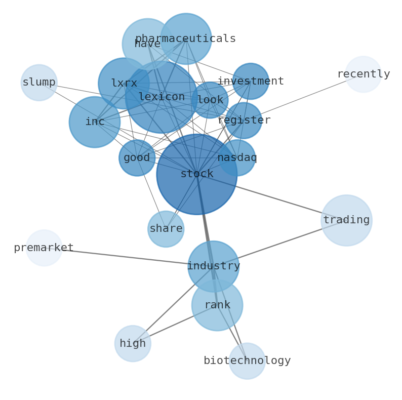 This document will help you to evaluate Lexicon Pharmaceuticals without reading an infinite amount of sources. Relying only on stock quotes or prices to make investment decisions is a mistake. Analyzing and observing stock charts, highs and lows and other numerical data does not allow to evaluate the real value of a company. Stock quotes and prices are the result of underlying characteristics of a company and of events and news happening around them. For this reason, investing must be based on information, not numbers. As a solution, we programmed an artificial intelligence that reads the whole internet and the uses natural language processing and vectorizers to summarize the information. Usually, the AI reads several hundred pages and summarize it to a short document. This document presents our results. We found that the most common words in the internet about Lexicon Pharmaceuticals are: stock, Lexicon, Pharmaceuticals, Inc, LXRX, trading, industry, and the most common words in the summary are: therapeutic, pharmaceutical, pharma, lexicon, bioscience, biotech, biopharma, . One of the sentences in the summary was: In the Biotechnology industry, which ranks 92 out of 146 industries, the stock ranks higher than 89% of stocks. Other searches related to this term that the AI found were: stockmarketlive, livestock, stockmarketforbeginners, thestockmarket, stockmarkettoday, stockmarkettrading, stockmarketstocks, todaystockmarket, thestockmarket, marketnews, stockmarketnews, whatisstockmarket, usstockmarket, stockmarketopen. #therapeutic #pharmaceutical #pharma #lexicon #bioscience #biotech #biopharma.