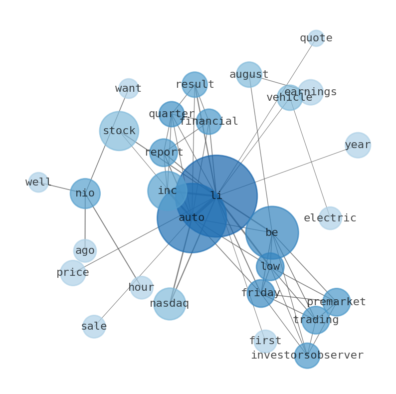 This document will help you to evaluate Li Auto without reading an infinite amount of sources. Relying only on stock quotes or prices to make investment decisions is a mistake. Analyzing and observing stock charts, highs and lows and other numerical data does not allow to evaluate the real value of a company. Stock quotes and prices are the result of underlying characteristics of a company and of events and news happening around them. For this reason, investing must be based on information, not numbers. As a solution, we programmed an artificial intelligence that reads the whole internet and the uses natural language processing and vectorizers to summarize the information. Usually, the AI reads several hundred pages and summarize it to a short document. This document presents our results. We found that the most common words in the internet about Li Auto are: Li, Auto, Inc, stock, LI, low, Friday, and the most common words in the summary are: li, auto, stock, new, engine, price, jul, . One of the sentences in the summary was: HSBC increased its target price for Li Auto shares from $38.00 to $43.00. Other searches related to this term that the AI found were: stockmarketlive, livestock, stockmarketforbeginners, thestockmarket, stockmarkettoday, stockmarkettrading, stockmarketstocks, todaystockmarket, thestockmarket, marketnews, stockmarketnews, whatisstockmarket, usstockmarket, stockmarketopen. #li #auto #stock #new #engine #price #jul.