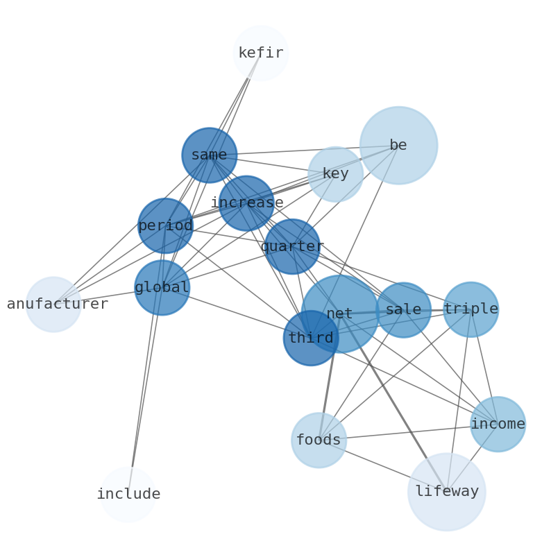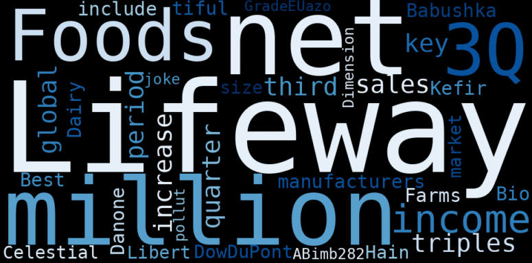 This document will help you to evaluate Lifeway Foods without reading an infinite amount of sources. Relying only on stock quotes or prices to make investment decisions is a mistake. Analyzing and observing stock charts, highs and lows and other numerical data does not allow to evaluate the real value of a company. Stock quotes and prices are the result of underlying characteristics of a company and of events and news happening around them. For this reason, investing must be based on information, not numbers. As a solution, we programmed an artificial intelligence that reads the whole internet and the uses natural language processing and vectorizers to summarize the information. Usually, the AI reads several hundred pages and summarize it to a short document. This document presents our results. We found that the most common words in the internet about Lifeway Foods are: Lifeway, Foods, net, income, triple, Net, sale, …