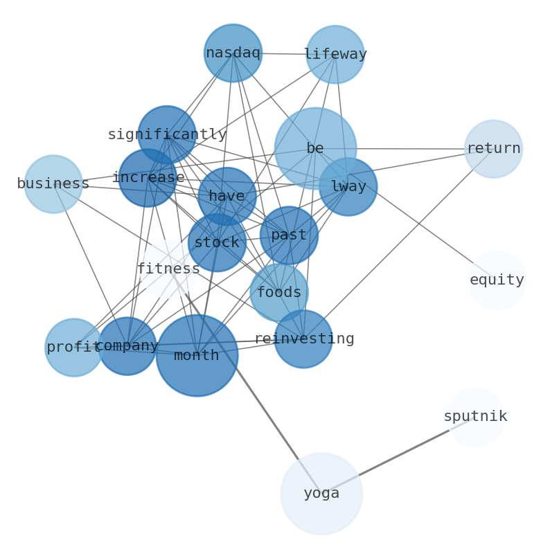This document will help you to evaluate Lifeway Foods without reading an infinite amount of sources. Relying only on stock quotes or prices to make investment decisions is a mistake. Analyzing and observing stock charts, highs and lows and other numerical data does not allow to evaluate the real value of a company. Stock quotes and prices are the result of underlying characteristics of a company and of events and news happening around them. For this reason, investing must be based on information, not numbers. As a solution, we programmed an artificial intelligence that reads the whole internet and the uses natural language processing and vectorizers to summarize the information. Usually, the AI reads several hundred pages and summarize it to a short document. This document presents our results. We found that the most common words in the internet about Lifeway Foods are: month, Lifeway, Foods, NASDAQLway, stock, increase, significantly, …
