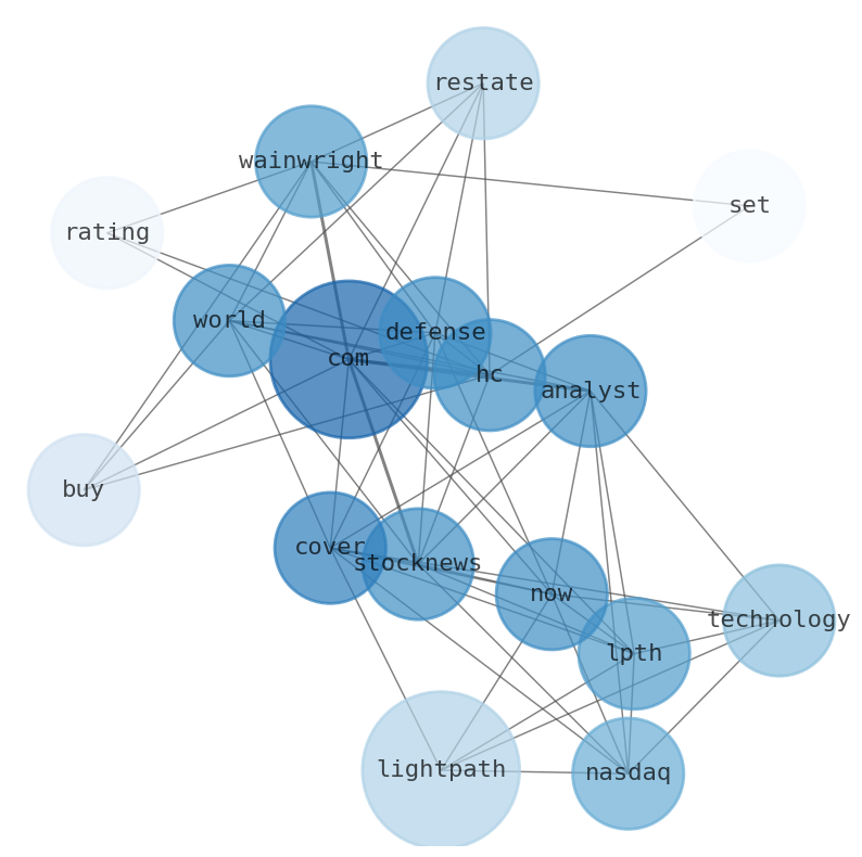 This document will help you to evaluate LightPath Technologies without reading an infinite amount of sources. Relying only on stock quotes or prices to make investment decisions is a mistake. Analyzing and observing stock charts, highs and lows and other numerical data does not allow to evaluate the real value of a company. Stock quotes and prices are the result of underlying characteristics of a company and of events and news happening around them. For this reason, investing must be based on information, not numbers. As a solution, we programmed an artificial intelligence that reads the whole internet and the uses natural language processing and vectorizers to summarize the information. Usually, the AI reads several hundred pages and summarize it to a short document. This document presents our results. We found that the most common words in the internet about LightPath Technologies are: LightPath, Technologies, nasdaqlpth, cover, analyst, stocknewscom, defense, and the most common words in the summary are: technology, lightpath, stock, photonics, network, link, penny, . One of the sentences in the summary was: LightPath Technologies (nasdaq:lpth) now covered by analysts at stocknews.com - defense world.com. Other searches related to this term that the AI found were: stockmarketlive, livestock, stockmarketforbeginners, thestockmarket, stockmarkettoday, stockmarkettrading, stockmarketstocks, todaystockmarket, thestockmarket, marketnews, stockmarketnews, whatisstockmarket, usstockmarket, stockmarketopen. #technology #lightpath #stock #photonics #network #link #penny.