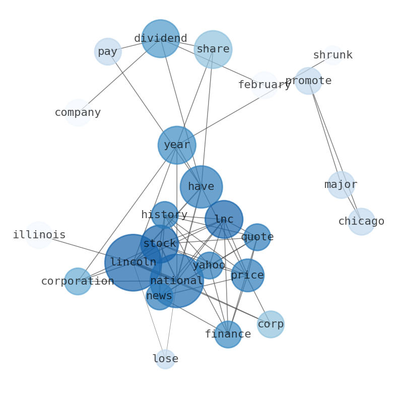 This document will help you to evaluate Lincoln National without reading an infinite amount of sources. Relying only on stock quotes or prices to make investment decisions is a mistake. Analyzing and observing stock charts, highs and lows and other numerical data does not allow to evaluate the real value of a company. Stock quotes and prices are the result of underlying characteristics of a company and of events and news happening around them. For this reason, investing must be based on information, not numbers. As a solution, we programmed an artificial intelligence that reads the whole internet and the uses natural language processing and vectorizers to summarize the information. Usually, the AI reads several hundred pages and summarize it to a short document. This document presents our results. We found that the most common words in the internet about Lincoln National are: Lincoln, National, dividend, year, stock, pay, Corp, and the most common words in the summary are: national, illinois, guard, lincoln, news, army, service, . One of the sentences in the summary was: Lincoln National Corp. Other searches related to this term that the AI found were: stockmarketlive, livestock, stockmarketforbeginners, thestockmarket, stockmarkettoday, stockmarkettrading, stockmarketstocks, todaystockmarket, thestockmarket, marketnews, stockmarketnews, whatisstockmarket, usstockmarket, stockmarketopen. #national #illinois #guard #lincoln #news #army #service.