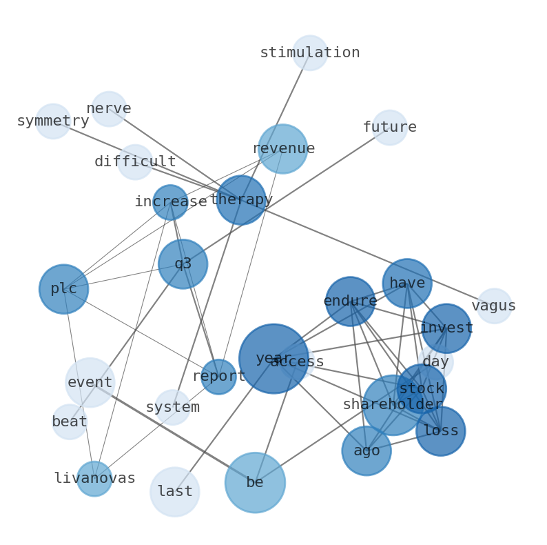 This document will help you to evaluate LivaNova without reading an infinite amount of sources. Relying only on stock quotes or prices to make investment decisions is a mistake. Analyzing and observing stock charts, highs and lows and other numerical data does not allow to evaluate the real value of a company. Stock quotes and prices are the result of underlying characteristics of a company and of events and news happening around them. For this reason, investing must be based on information, not numbers. As a solution, we programmed an artificial intelligence that reads the whole internet and the uses natural language processing and vectorizers to summarize the information. Usually, the AI reads several hundred pages and summarize it to a short document. This document presents our results. We found that the most common words in the internet about LivaNova are: LivaNova, year, PLC, Q3, revenue, shareholder, endure, and the …