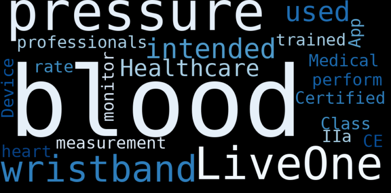 LiveOne blood pressure wristband is intended to be used by healthcare professionals trained to perform blood pressure measurement. The LiveOne wristband (and App) is a CE Certified Medical Device Class IIa Blood pressure and heart rate monitor..